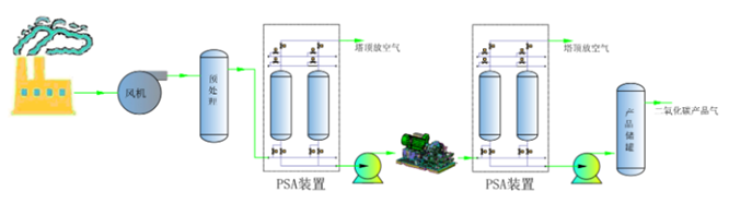 石灰窑气、水泥窑气、玻璃窑气、烟道气、发酵气等富含一定的二氧化碳。不同气源的二氧化碳的分压差距较大,根据不同的气源成分,我公司开发了两种二氧化碳回收技术:一是低分压二氧化碳有机胺吸收技术,可将气源中8~15%(vol)的二氧化碳提纯至99%以上,二氧化碳收率为90%以上,采用专利胺溶液进行二氧化碳的吸收分离,具有二氧化碳吸收能力高、再生能耗低、基本消除氧气降解副反应以及设备腐蚀极小等优点;二是二氧化碳变压吸附(PSA)回收专利技术,可将二氧化碳提高至90%以上,二氧化碳的回收率70~90%,利用专有吸附剂对二氧化碳捕集解吸,具有运行费用低,自动化程度高,设备寿命长,无三废产生等优点;以上2种二氧化碳气体通过进一步纯化/液化可以获得工业级或食品级二氧化碳产品,实现碳捕集和利用。